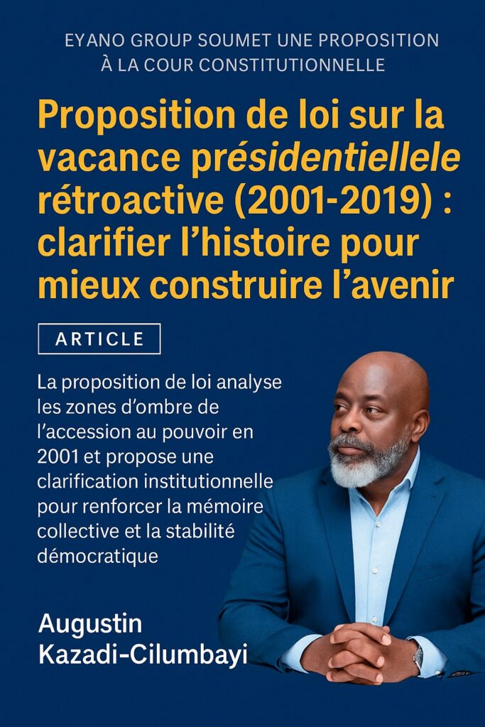La proposition de loi sur la vacance présidentielle rétroactive (2001-2019), déposée par Eyano Group à la Cour Constitutionnelle, est un acte de responsabilité nationale.